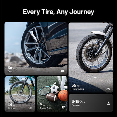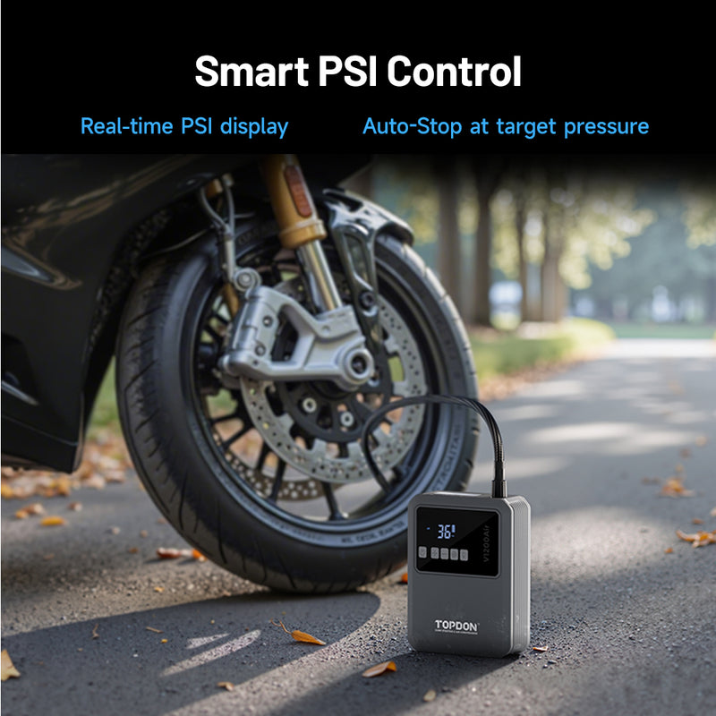 - Yksi laite, rajaton täyttö. Monipuolisella 3–150 PSI -alueella V1200 Air täyttää lähes kaiken päivittäisistä ajoneuvoista urheiluvarusteisiin ja seikkailuvälineisiin. Vaihda hetkessä esiasetettujen tilojen—Auto, Moottoripyörä, Pyörä, Pallo—välillä tai luo omat asetukset ainutlaatuisia tarpeita varten. Älykäs kuivan käynnin tunnistus pysäyttää toiminnan 1 minuutissa, jos laitetta ei käytetä, estäen energian hukkaa ja moottorin vaurioitumista. Minne matkasi viekin, pysy valmiina.
