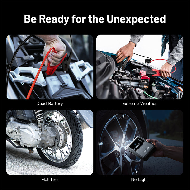 - Käsittele luottavaisin mielin tyhjiä tai jopa kuolleita akkuja useimmissa perheajoneuvoissa, mukaan lukien autot, moottoripyörät ja veneet. V1200Air tukee moottoreita jopa 6,0 litran bensiinimoottoreihin tai 4,5 litran dieselmoottoreihin asti, ja se saa sinut liikkeelle muutamassa minuutissa.