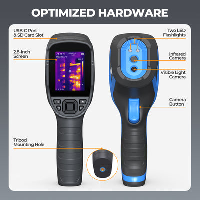 - NETD di questo sensore infrarosso ad alta precisione è inferiore a 40mK e la risoluzione dell'imaging termico mostra fino a 0,1℃. Il margine di errore dello strumento è inferiore al 2%. Questo per garantire le letture termiche più accurate.