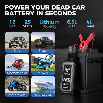 - Questo dispositivo da 1200A avvia le batterie in 1-2 secondi. Può anche fornire fino a 25 avviamenti con una singola carica.