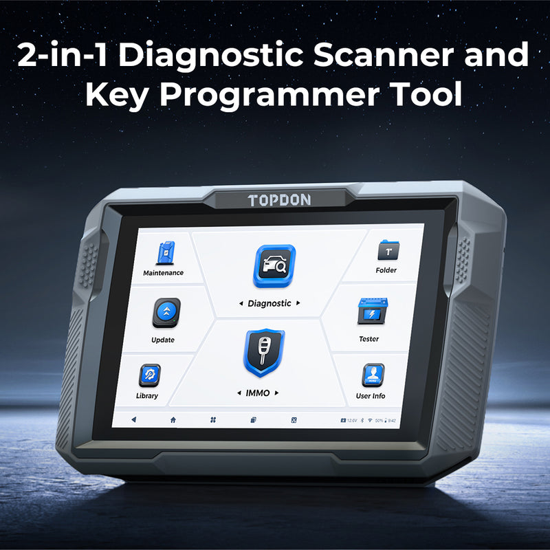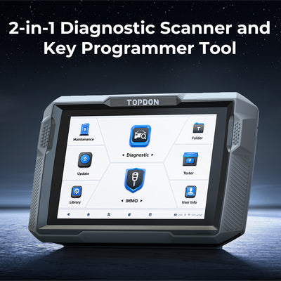 De TOPDON UltraDiag is een veelzijdig diagnosetool met extra functies voor sleutelprogrammering. De UltraDiag biedt volledige OBD2-mogelijkheden, toegang tot 30 veelgebruikte onderhoudsdiensten en ondersteunt volledige systeemdiagnoses voor meer dan 100 automerken wereldwijd. Voor geavanceerdere functies bevat de diagnosescanner onder andere de Repair Data Library om snel aan de slag te gaan met autoreparaties en bidirectionele bediening om defecte onderdelen nauwkeurig te lokaliseren.