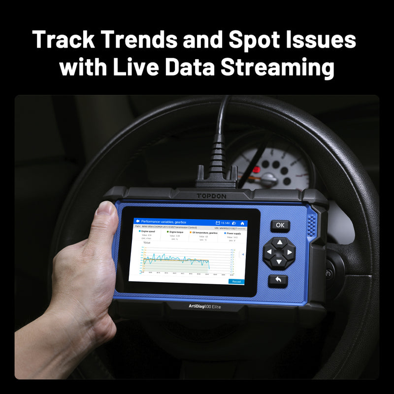 TOPDON's ArtiDiag600 Elite streamlines vehicle diagnostics for both DIYers and professionals. Compatible with over 70 brands, it helps you easily read and clear fault codes, and take care of routine tasks like oil reset—saving you time and effort. With 2 years free updates, it keeps up with new features, so you're always prepared.