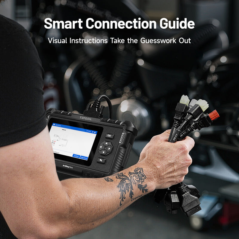Zasnovan za strastne domače mojstre in tehnike, TOPDON ArtiDiag Moto poenostavi diagnostiko motornih koles. Podpira 15 vodilnih blagovnih znamk, vključno z BMW, Honda, Harley itd., in pokriva vse sisteme, da lahko temeljito pregledate vsak vidik motornega kolesa. Skozi vzdrževalne storitve lahko ohranjate svoje motorno kolo v vrhunski formi, natančno odkrivate težave in spremljate delovanje v realnem času – vse to preko intuitivnega vmesnika. Uživajte v enem letu brezplačnih posodobitev programske opreme, kar zagotavlja, da vaša naložba še naprej prinaša izjemno vrednost.